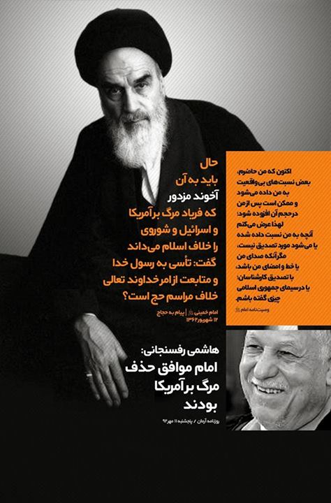 طنزش دلنشین بود واقعا شده شرح حال این روزهای آ.هاشمی رو بیان می کنه به راستی چرا یار دیرین امام باید به این توهم بیفته که هر اسرائیلیاتی که دوست داشت رو خط انقلاب نسبت بده؟